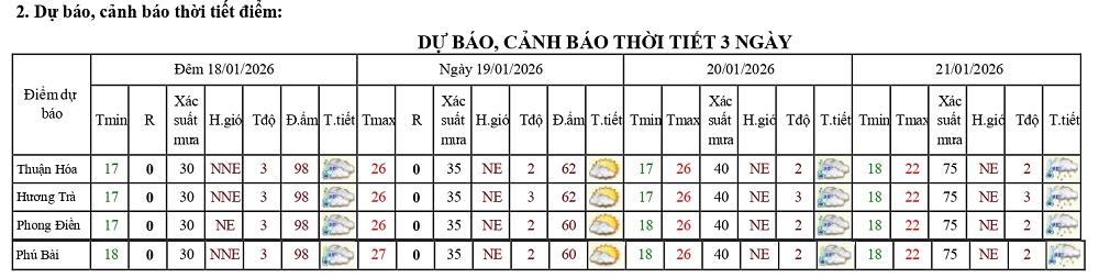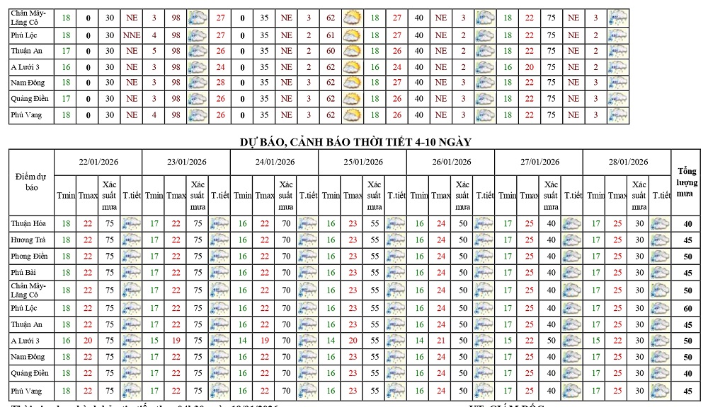 Bản tin dự báo thời tiết ngày 19/01/2026 và 10 ngày tiếp theo