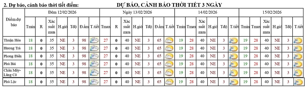 Bản tin dự báo thời tiết ngày 13/02/2026 và 10 ngày tiếp theo