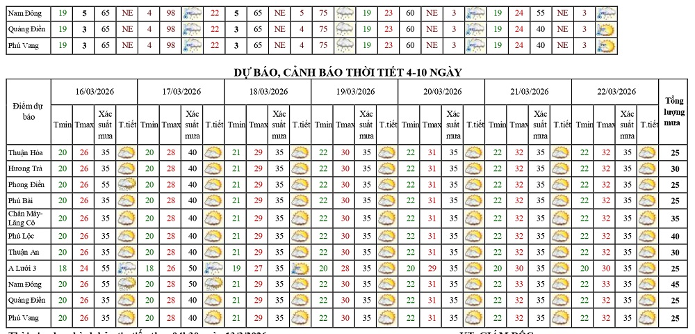 Bản tin dự báo thời tiết ngày 13/3/2026 và 10 ngày tiếp theo